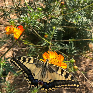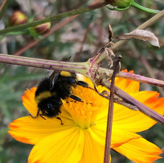 Les insectes pollinisateurs adorent les fleurs orange du cosmos sulfureux, nombreux sont les insectes observés lors des récoltes au jardin tinctorial notamment des coccinelles, des bourdons, des abeilles et de très beaux papillons!